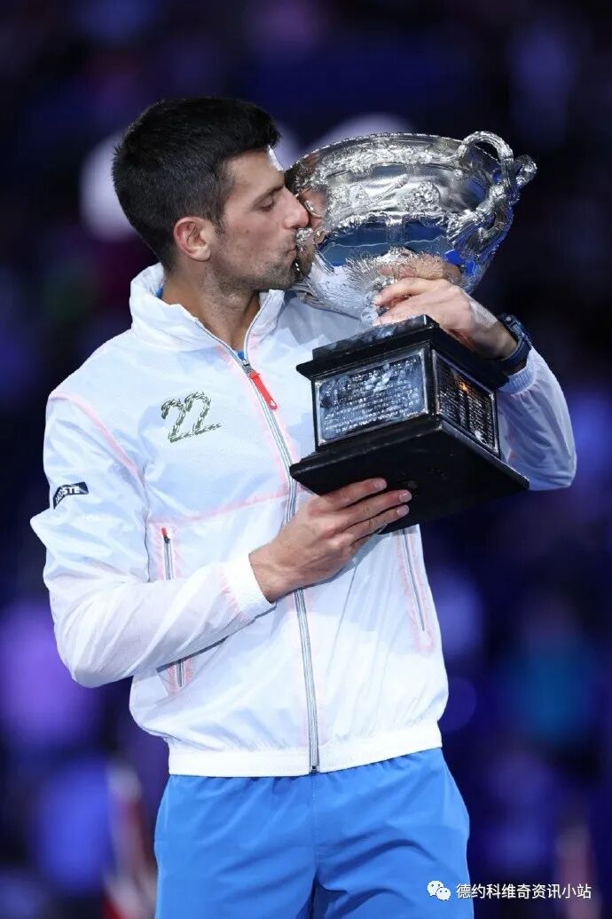 ,再次將澳網冠軍獎杯收入囊中。 德約科維奇再次創造記錄,第十次贏得澳網諾曼布魯克斯挑戰杯;這也是德約科維奇職業生涯第22座大滿貫獎杯,追平納達爾 ,領跑男子大滿貫數量排行榜