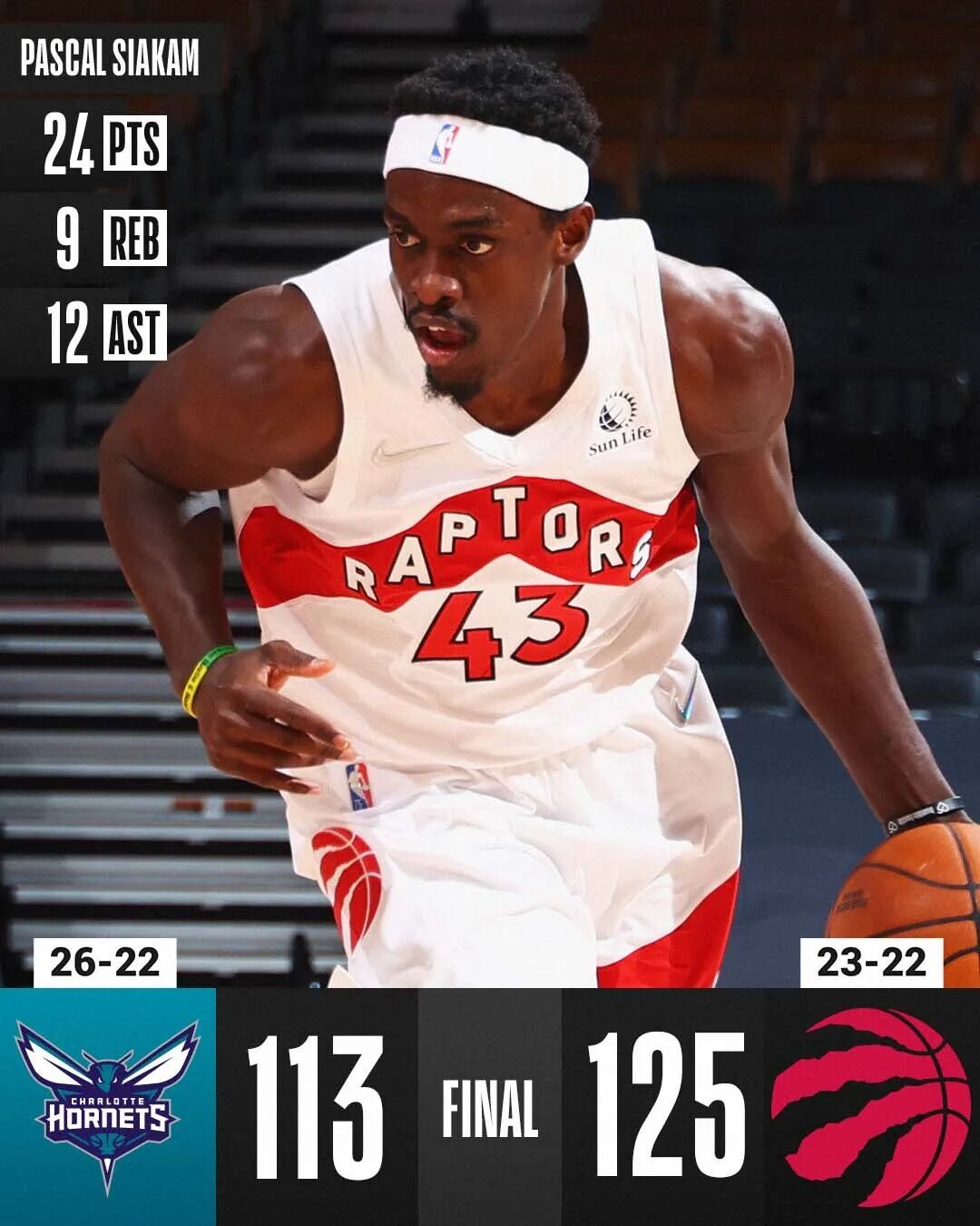 ,登哥依然高效, 用50%命中率拿下3雙, 但球隊能給他的支持實在有限 。 猛龍隊範弗裏特和巴恩斯缺陣 ,西亞卡姆24分9籃板12助攻